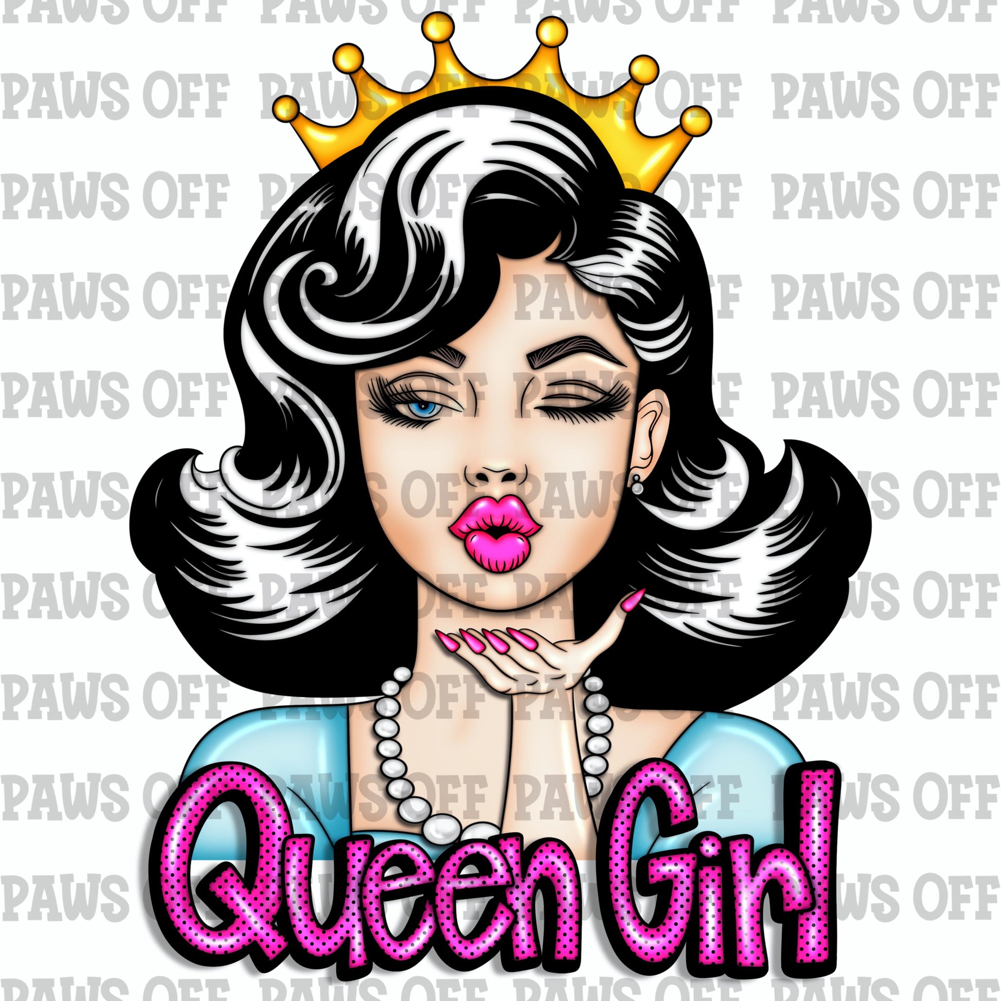 Make a bold and fabulous statement with this Queen Girl PNG! Featuring a retro glam diva blowing a kiss, crowned in royalty and radiating confidence, this high-resolution digital artwork is perfect for sublimation on t-shirts, mugs, tote bags, tumblers, stickers, and more.